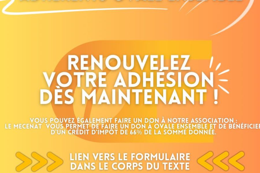 Chers amis,Chers adhérents, Qui dit nouvelle année, dit nouvelle campagne d’adhésion ! Ne tardez pas à remplir votre formulaire adhérent pour l’année 2026 : https://ovale-ensemble.assoconnect.com/collect/description/659348-a-cotisations-2026